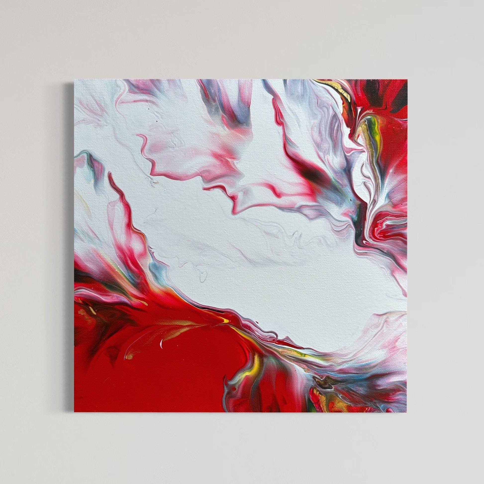 ”Passion”, the fire that comes from within. This painting, full of fire and intrigue offers a bright yet intimate statement piece for your room. Unframed but available with framing options.