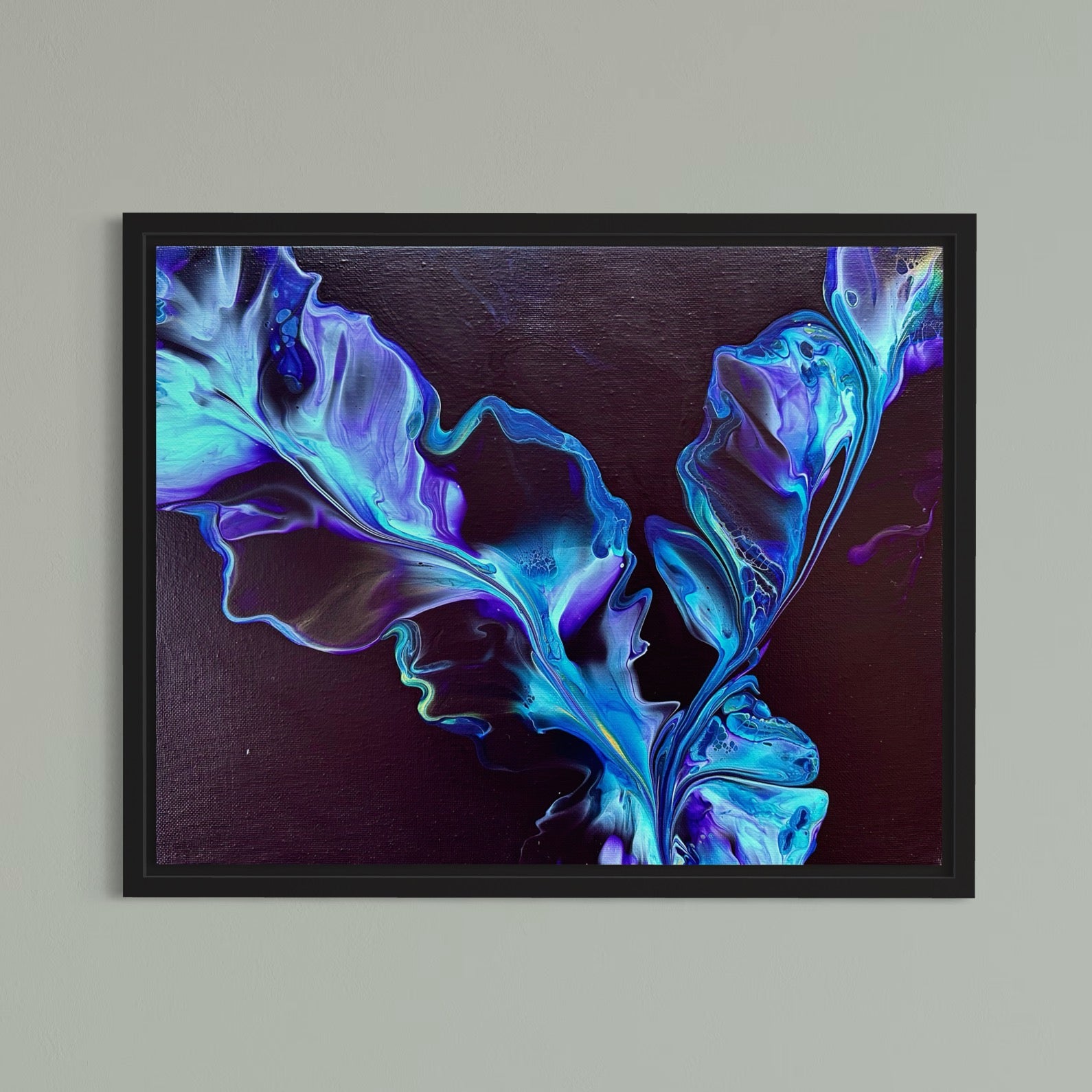 Dark, yet vibrant. Emulates the flowing and fluid quality of your sweetest dreams. The light breaking through the darkness, never to be silenced. 14" x 11". Unframed
